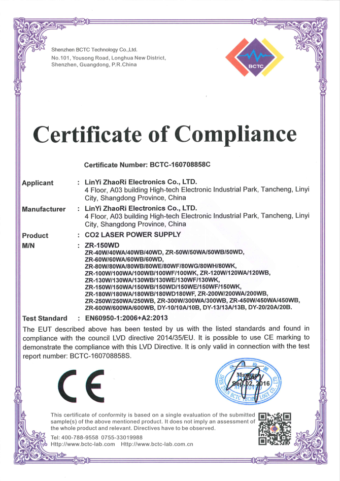 • 山東朝日電子有限公司是一家從事CO2激光電源研發、生產、銷售于一體的專業廠家,主要產品為40W/50W/60W/80W/100W/120W/130W/150W/200W/300W/400W二氧化碳激光電源。公司自2003年成立以來,始終堅持“以質量求生存,靠信譽謀發展”的理念.公司擁有業界高素質管理人才和技術精英,所有原材料都經過嚴格細致的檢測檢驗,生產流程嚴格貫徹執行ISO9001質量管理體系。卓越的品質、合理的價格和全體員工的不懈努力使我們的公司已穩步走在行業的前列。